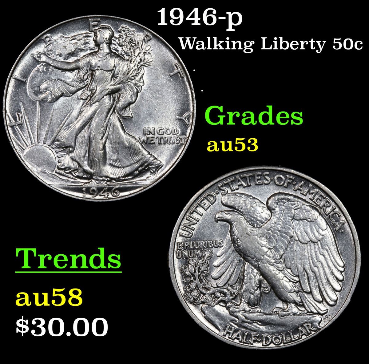 1946-p . . Walking Liberty Half Dollar 50c Grades Select AU.