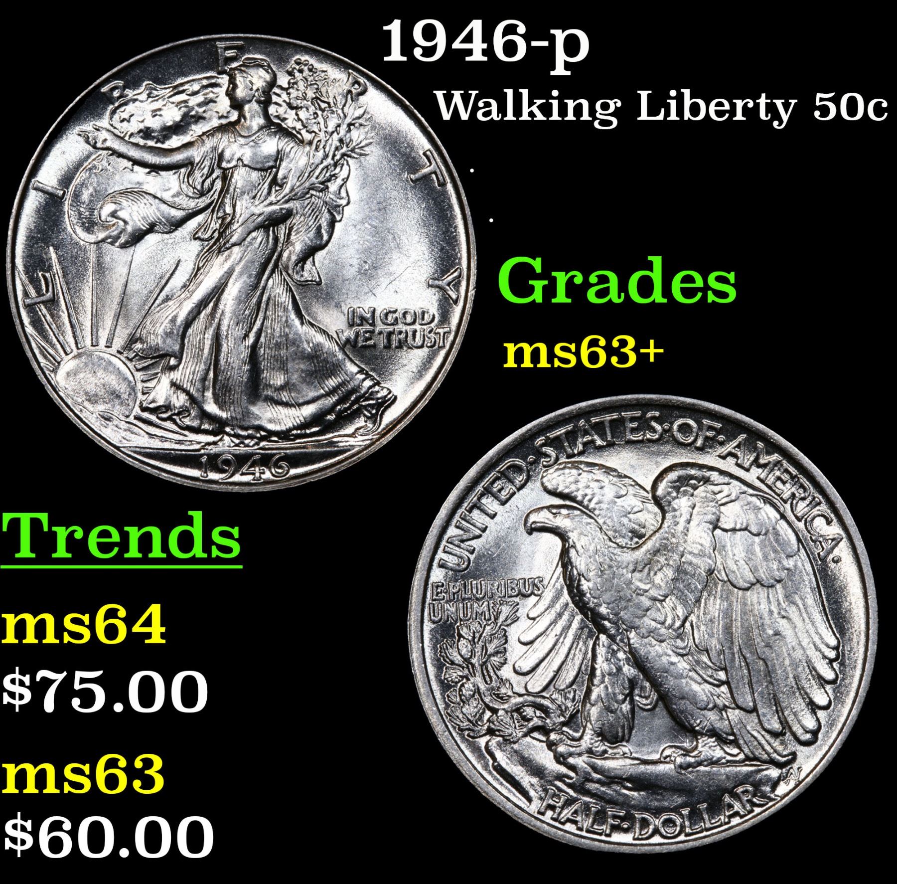 1946-p . . Walking Liberty Half Dollar 50c Grades Select+ Unc.