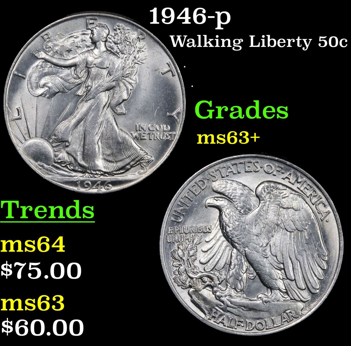 1946-p Walking Liberty Half Dollar 50c Grades Select+ Unc.