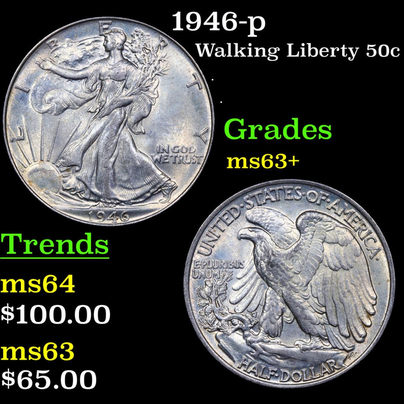1946-p Walking Liberty Half Dollar 50c Grades Select+ Unc.