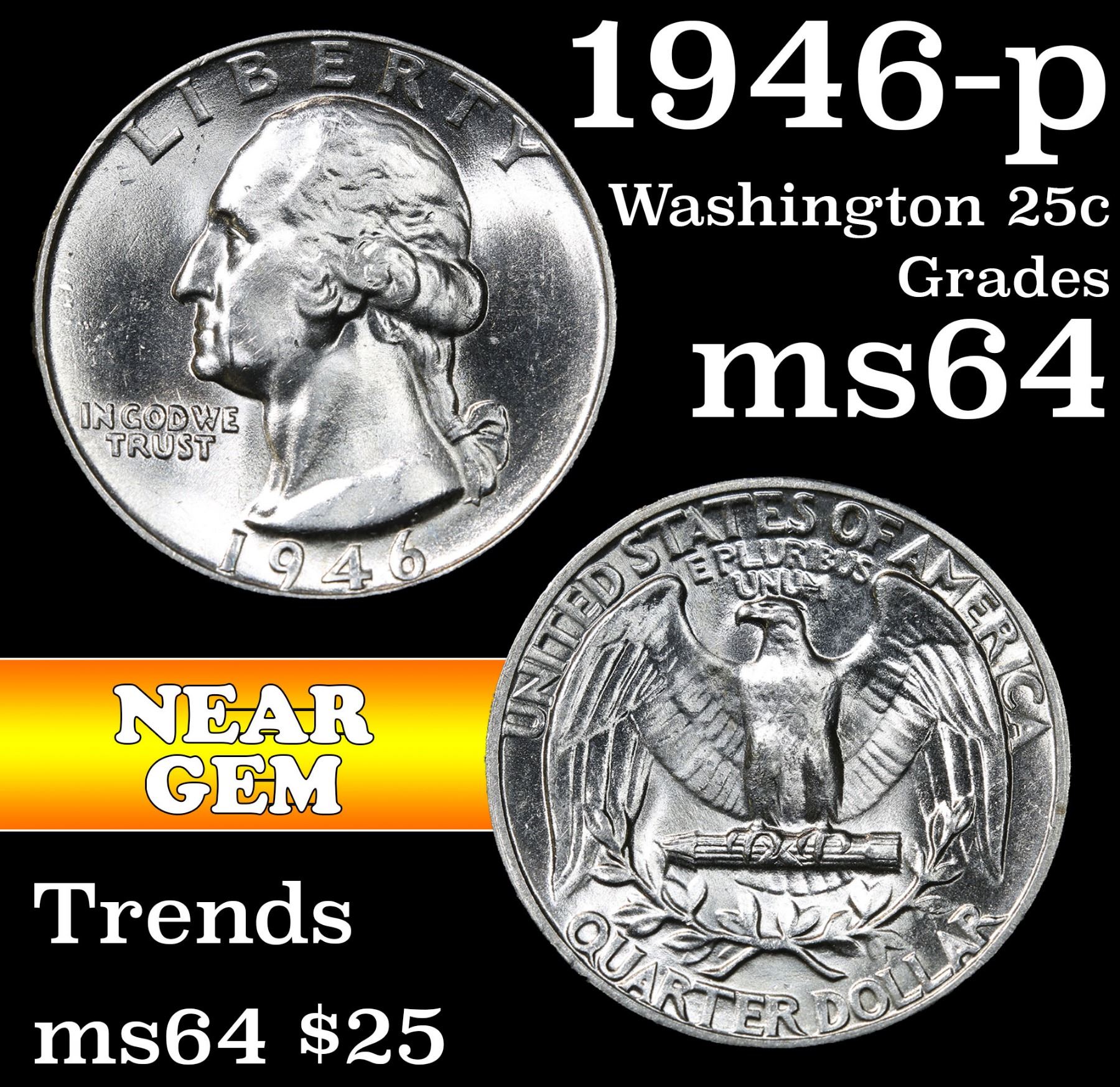 1946-p Washington Quarter 25c Grades Choice Unc.