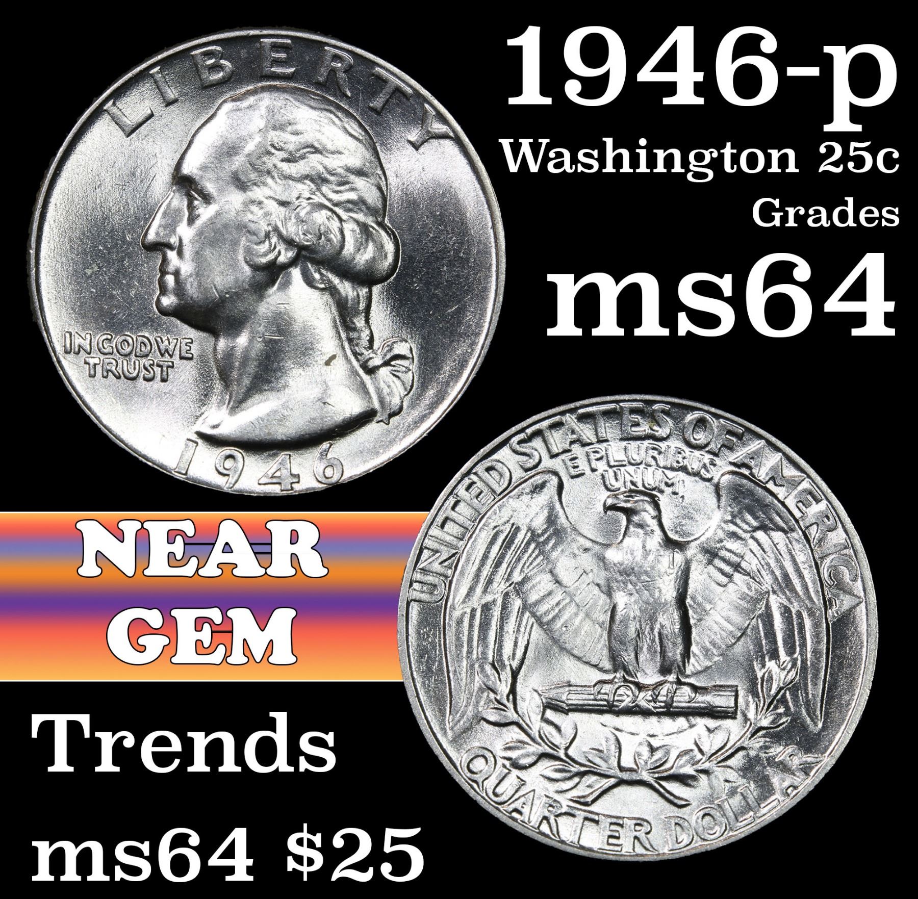 1946-p Washington Quarter 25c Grades Choice Unc.