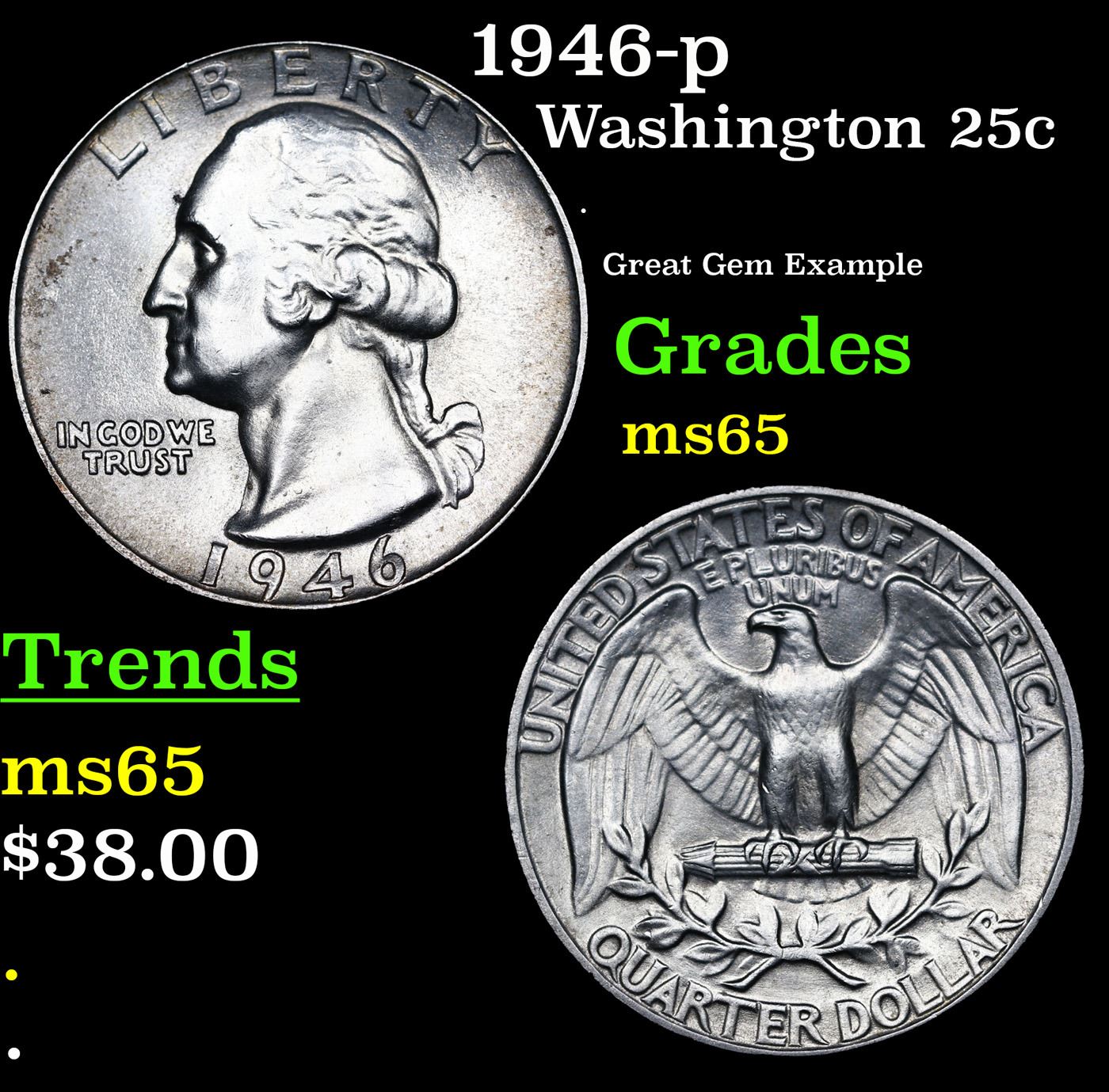1946-p Washington Quarter 25c Grades GEM Unc.