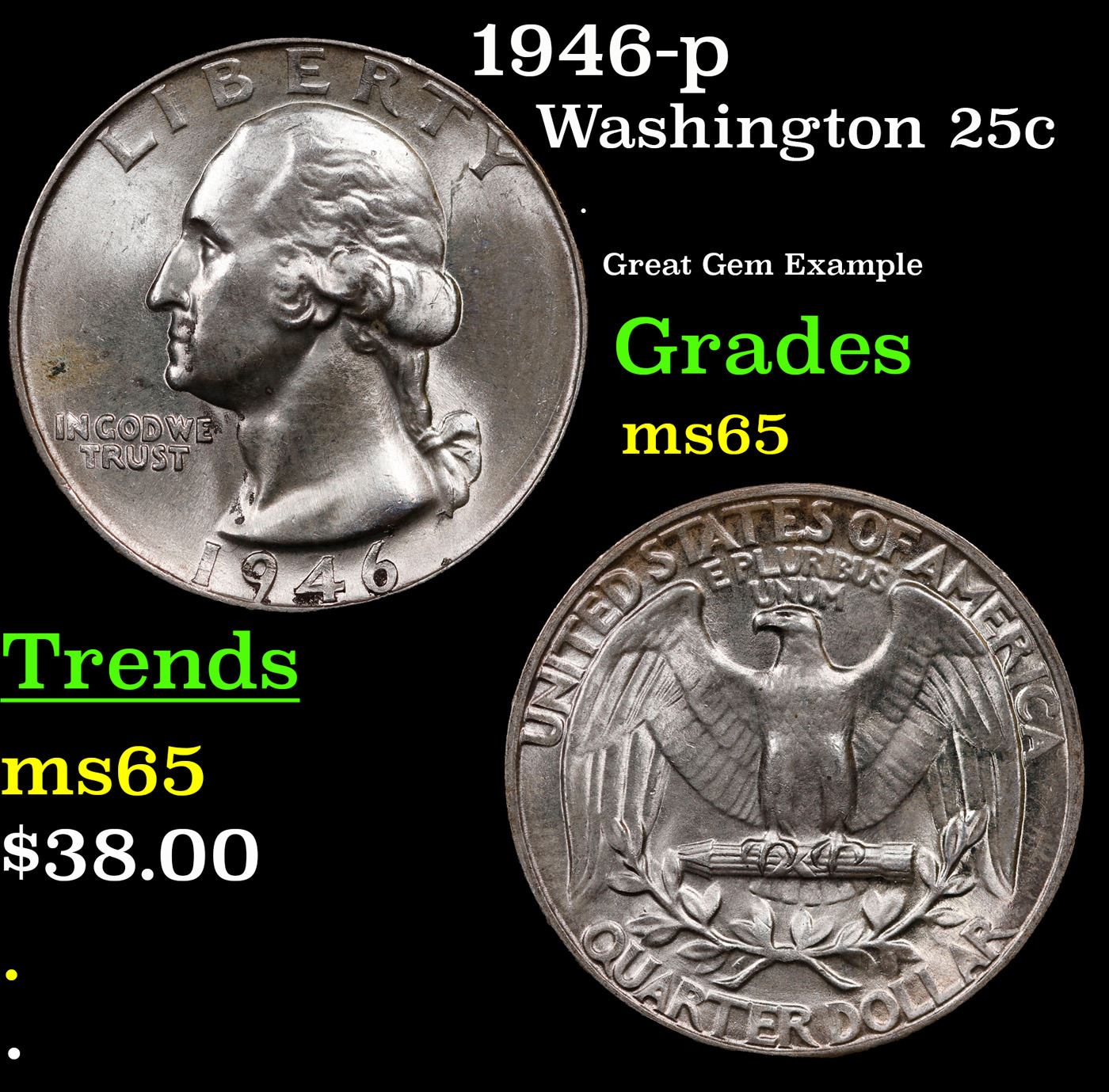 1946-p Washington Quarter 25c Grades GEM Unc.