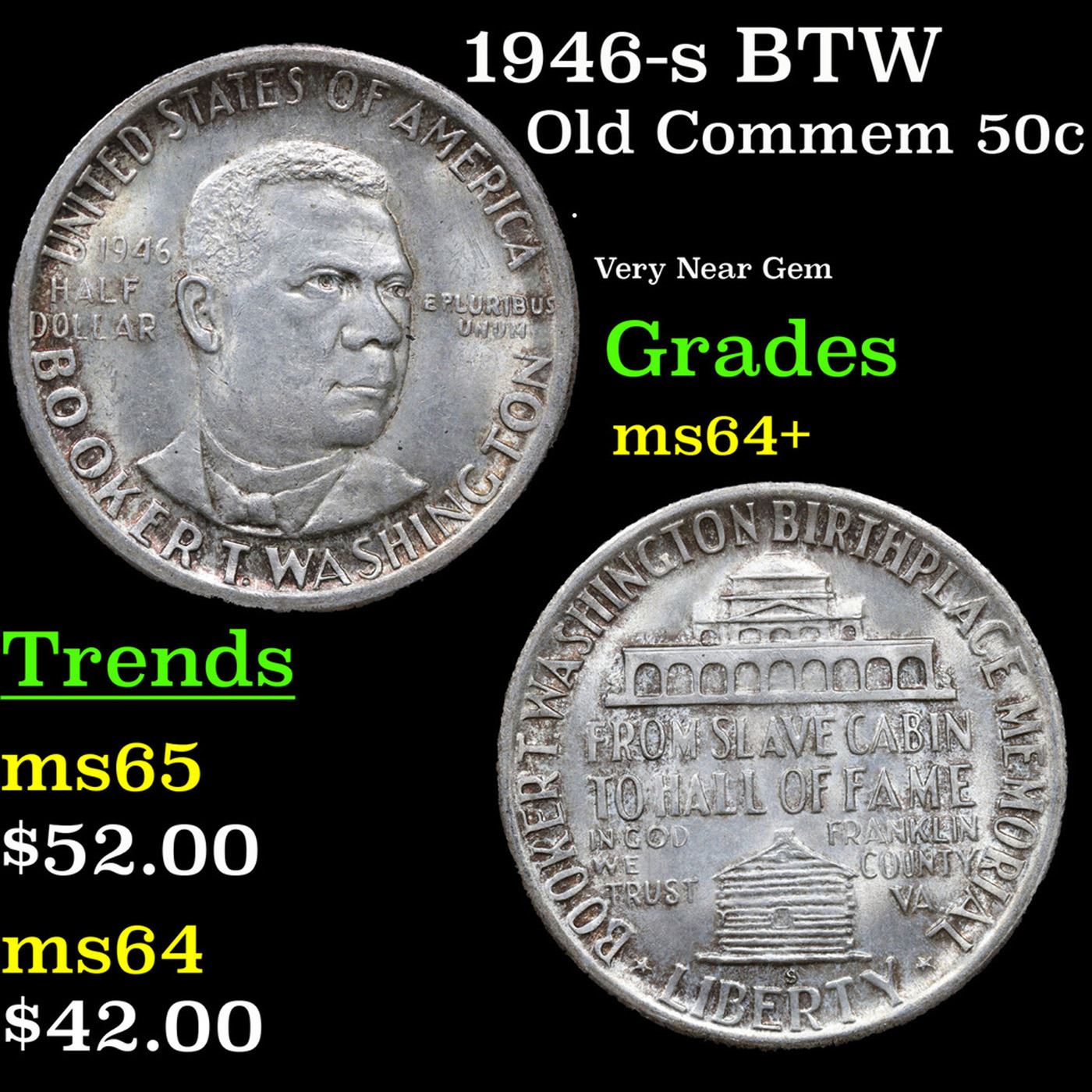 1946-s BTW Old Commem Half Dollar 50c Grades Choice+ Unc. When examining a Booker T. Washington commemorative look for wear on the high points, on the obverse that is Mr. Washington's right Cheek (from his perspective), and on the reverse the arches on the top building.