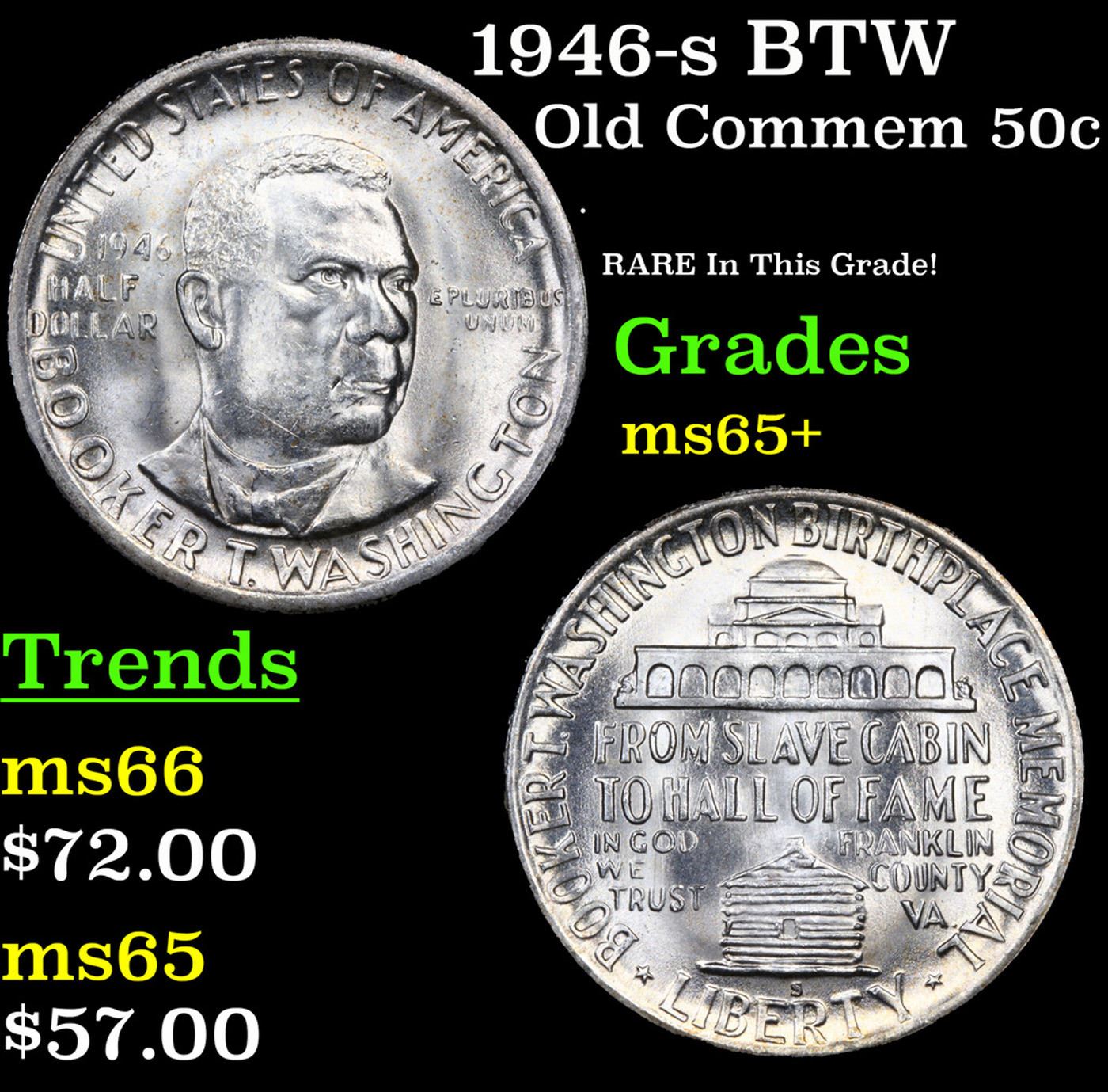 1946-s BTW Old Commem Half Dollar 50c Grades GEM+ Unc. When examining a Booker T. Washington commemorative look for wear on the high points, on the obverse that is Mr. Washington's right Cheek (from his perspective), and on the reverse the arches on the top building.