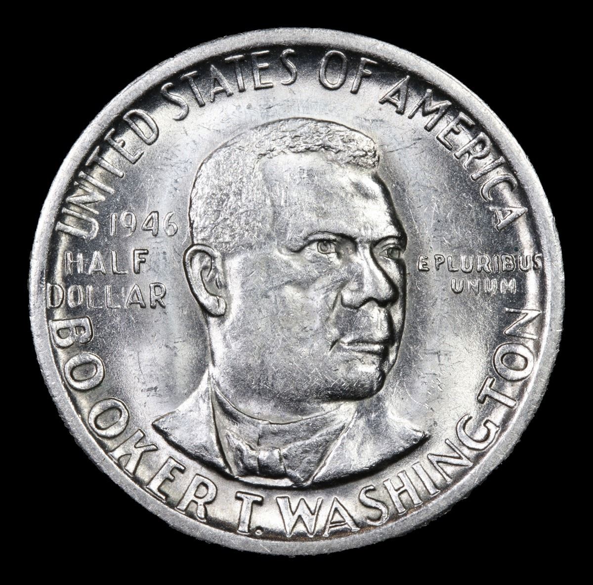 1946-s BTW . . Old Commem Half Dollar 50c Grades Select+ Unc. When examining a Booker T. Washington commemorative look for wear on the high points, on the obverse that is Mr. Washington's right Cheek (from his perspective), and on the reverse the arches on the top building.