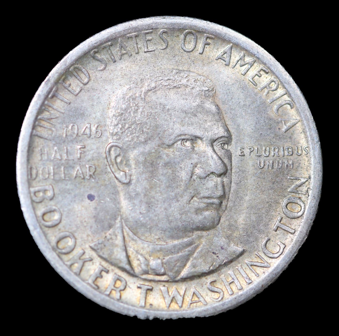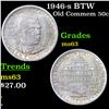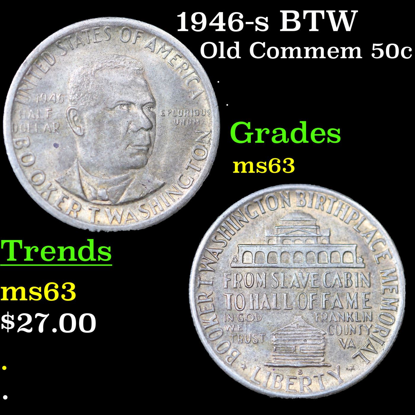 1946-s BTW Old Commem Half Dollar 50c Grades Select Unc. When examining a Booker T. Washington commemorative look for wear on the high points, on the obverse that is Mr. Washington's right Cheek (from his perspective), and on the reverse the arches on the top building.