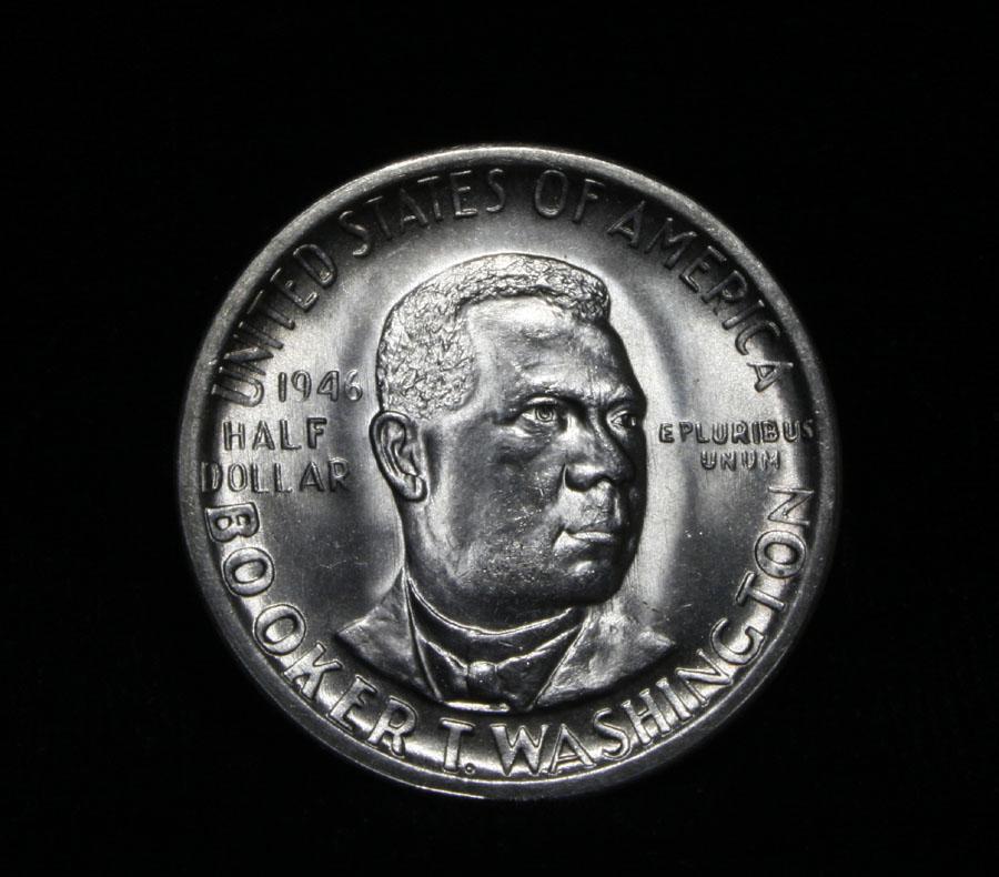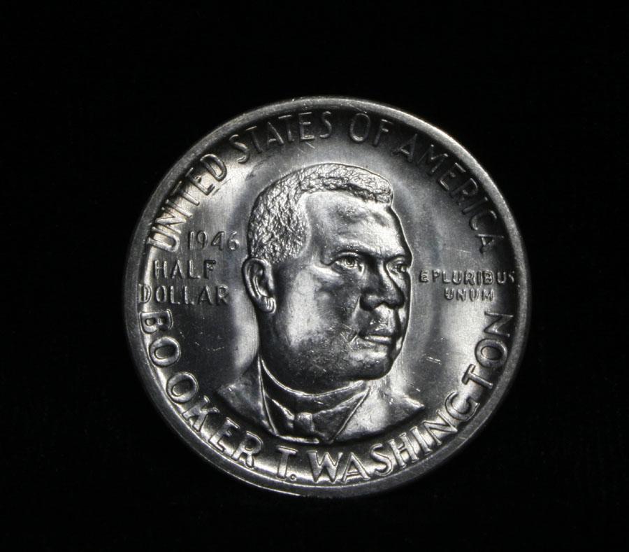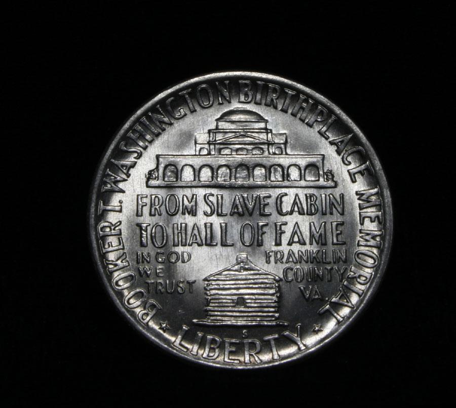 Blazing Luster highlight this great example. When examining a Booker T. Washington commemorative look for wear on the high points, on the obverse that is Mr. Washington's right Cheek (from his perspective), and on the reverse the arches on the top building. Coin World's Coin Values lists ms65 at $85 and ms66 at $225. The Wholesale Greysheet lists ms65 at $75 and ms66 at $150. Estimated Value $100