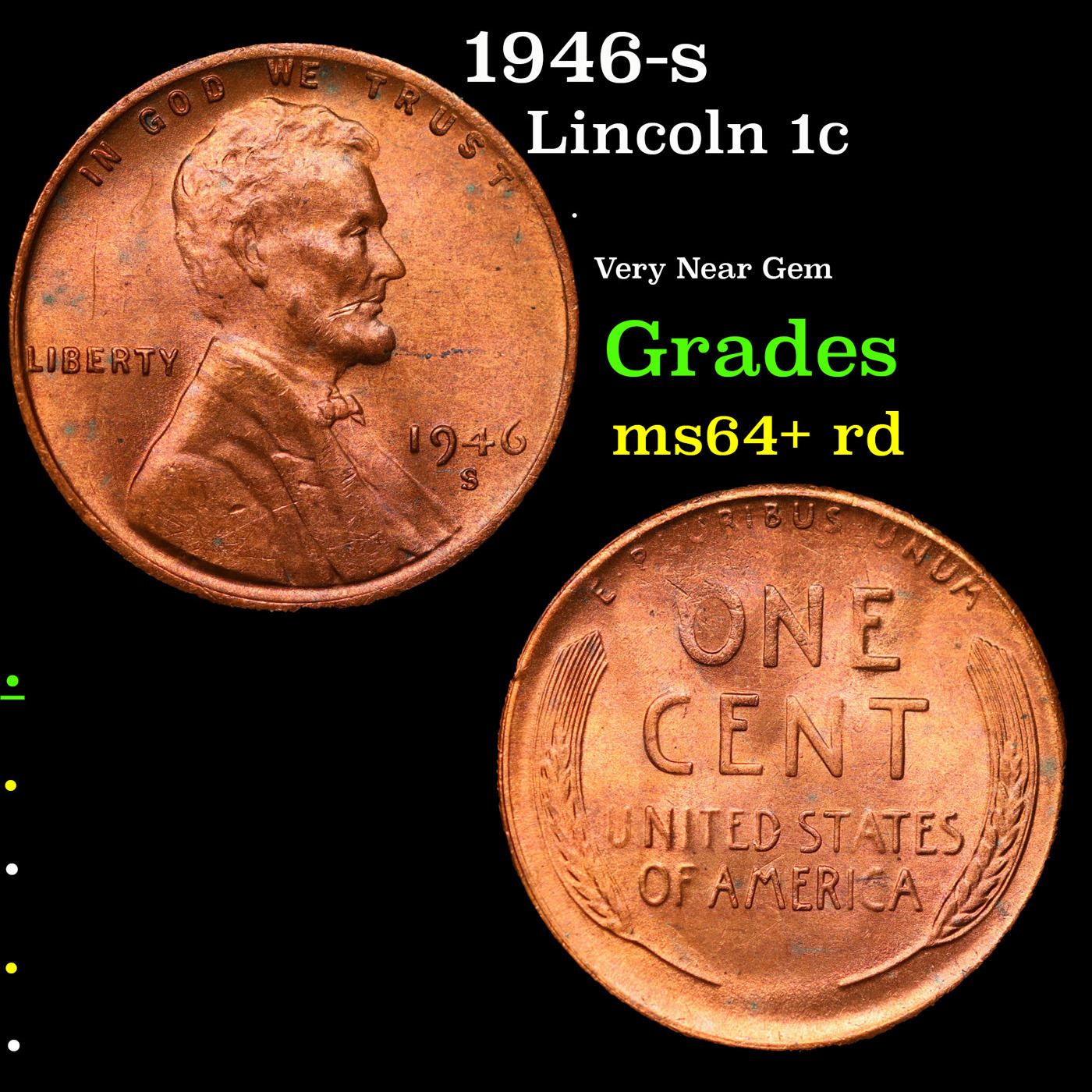 1946-s Lincoln Cent 1c Grades Choice+ Unc RD.