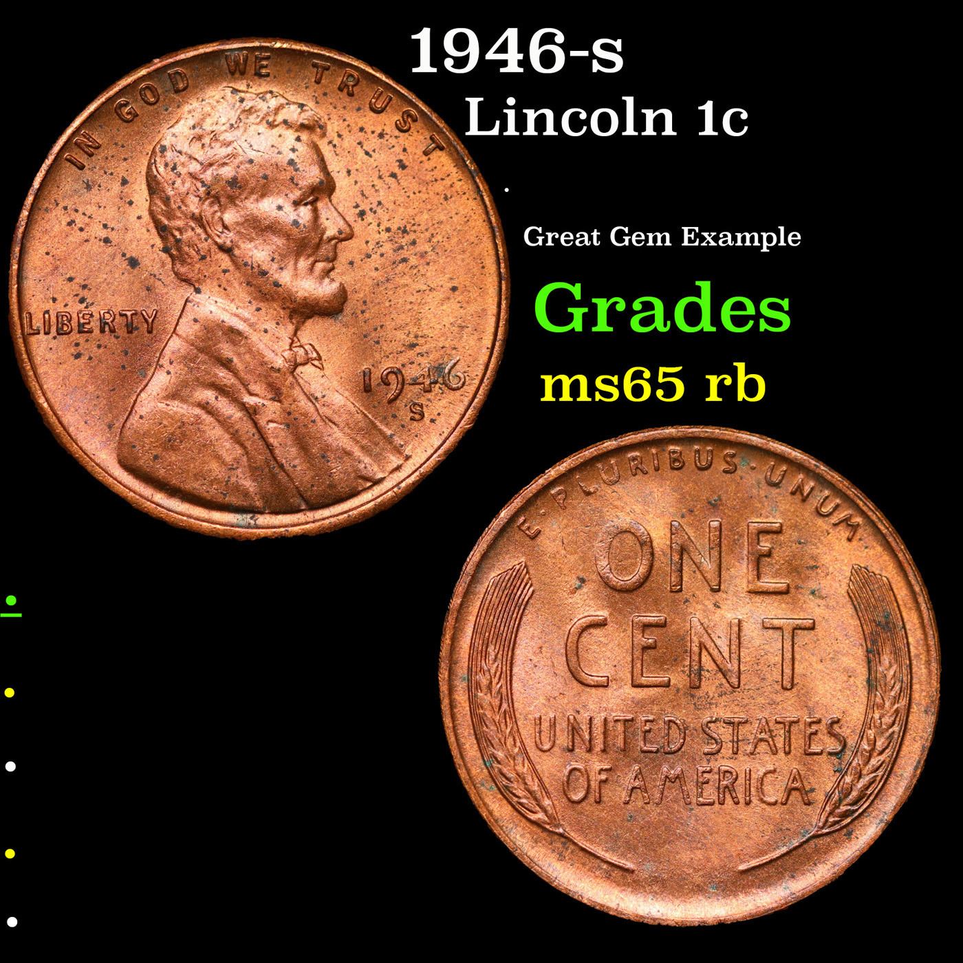 1946-s Lincoln Cent 1c Grades GEM Unc RB.