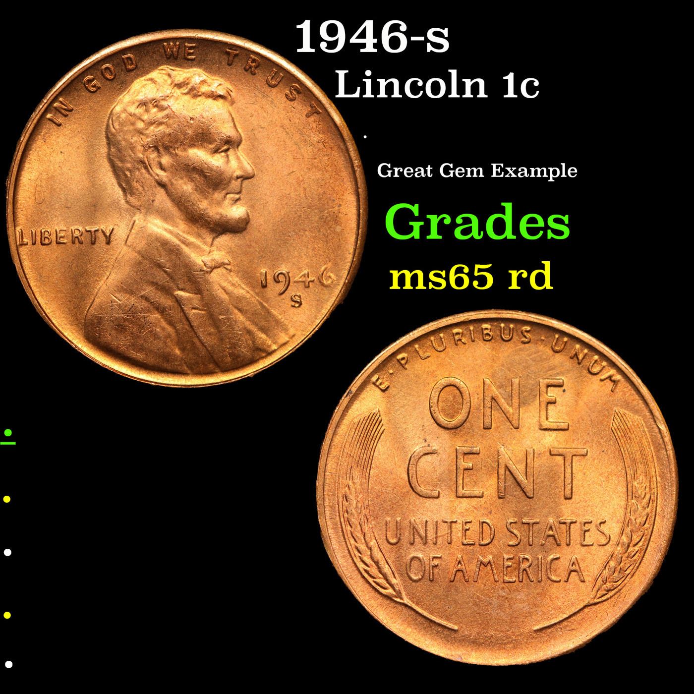 1946-s Lincoln Cent 1c Grades GEM Unc RD.