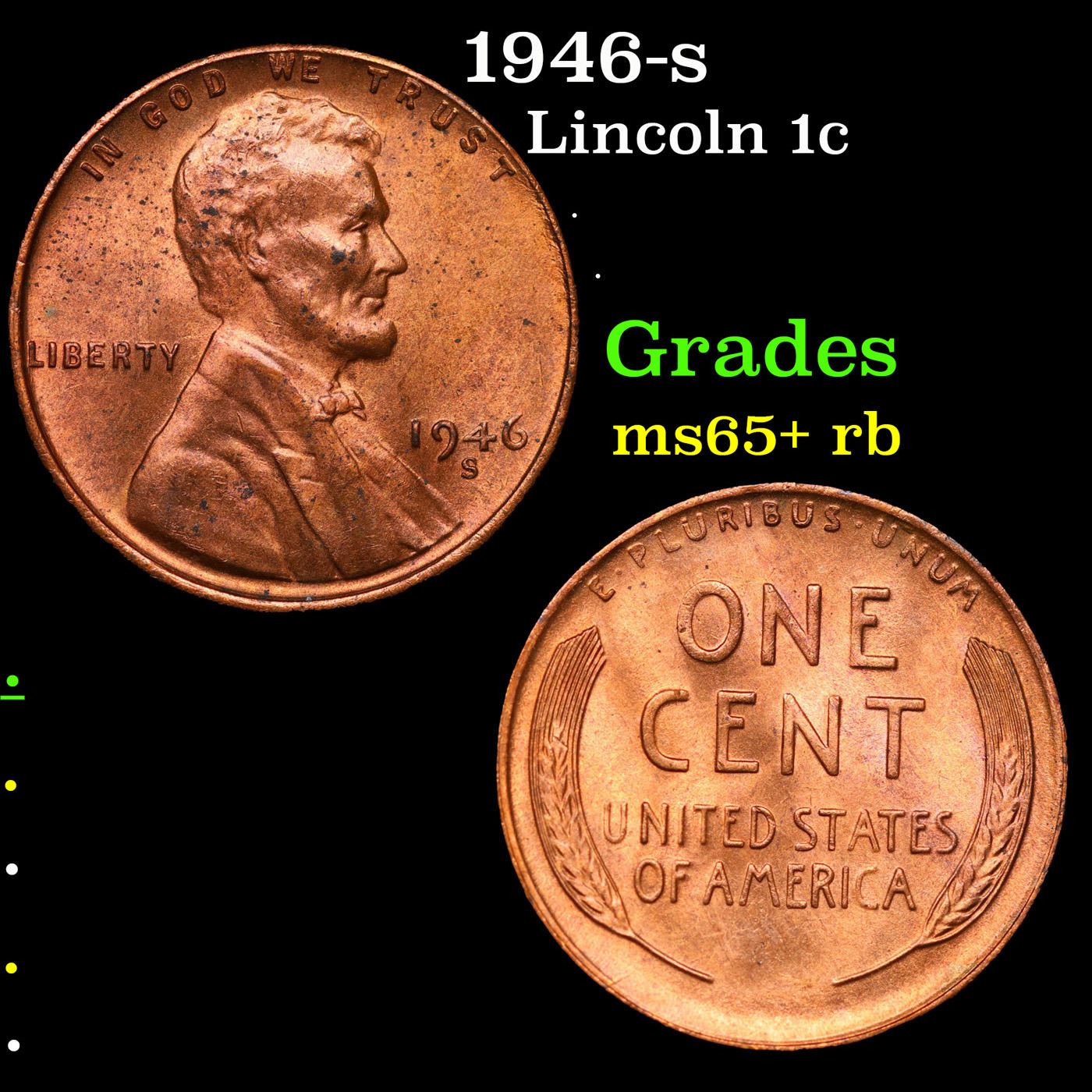 1946-s Lincoln Cent 1c Grades Gem+ Unc RB.