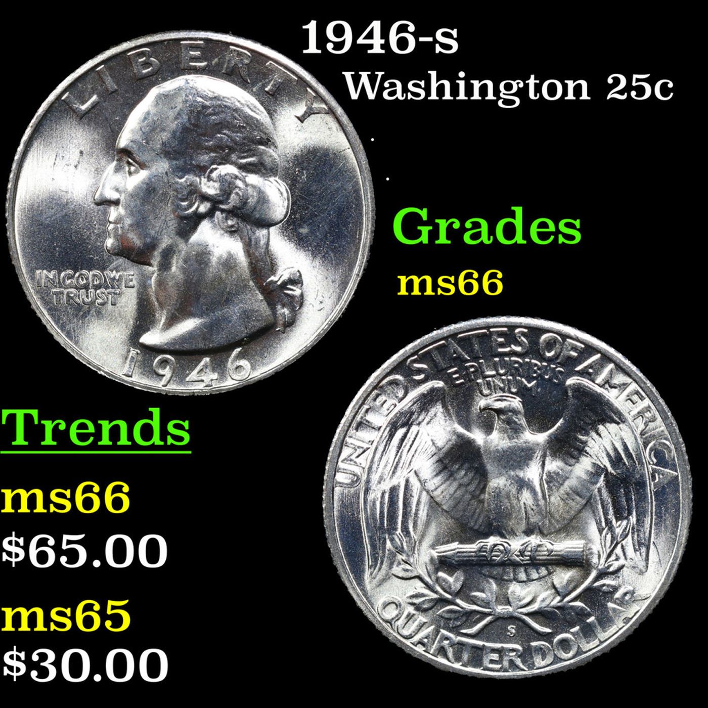 1946-s Washington Quarter 25c Grades GEM+ Unc.