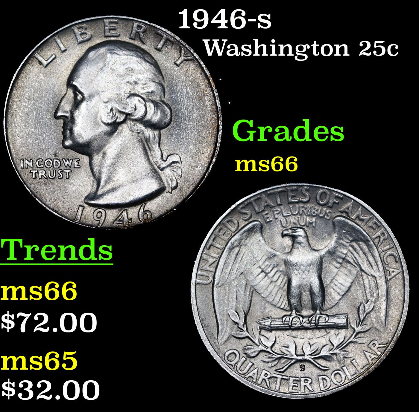 1946-s Washington Quarter 25c Grades GEM+ Unc.
