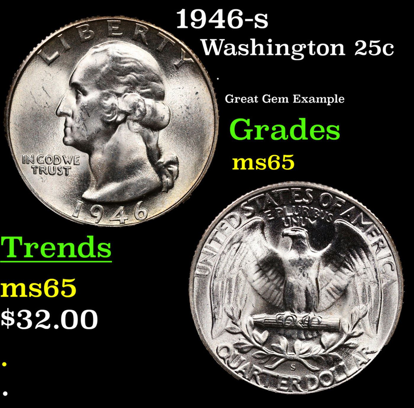 1946-s Washington Quarter 25c Grades GEM Unc.