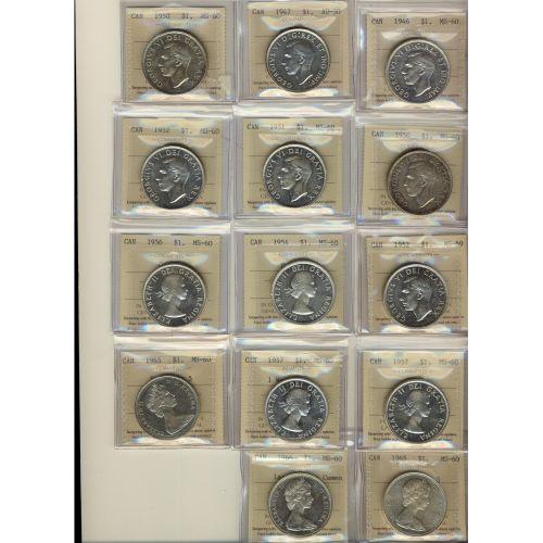 1946 to 1966 $1, Lot of 14 coins all ICCS MS