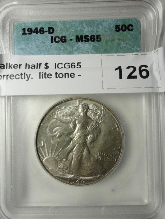 1946D Walker half $ ICG65 graded correctly. lite tone