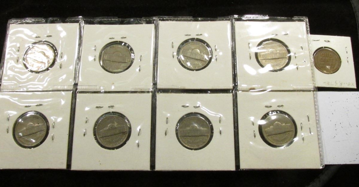 1946S, 49P, (2) 54D, (2) 55D, 56D,& 59D Better grade Jefferson Nickels; & a Rare 1926 S Cent in Fine