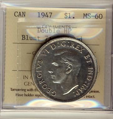 1947 $1 BL7 DBL HP ICCS MS60. Designated cleaned.
