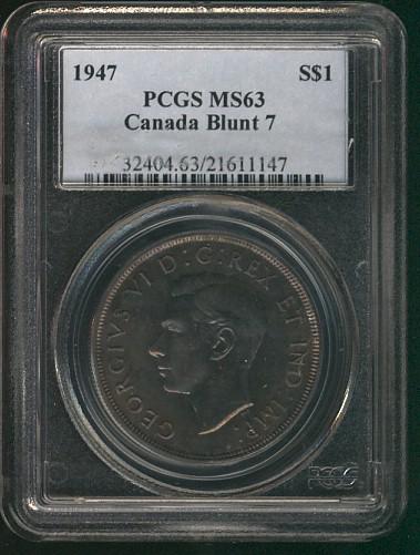 1947 $1 Blt 7 PCGS MS63. Intense tones on obverse.
