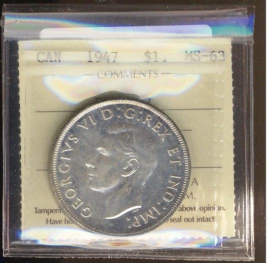 1947 $1 Blt7 ICCS MS63. Lustrous full white issue.
