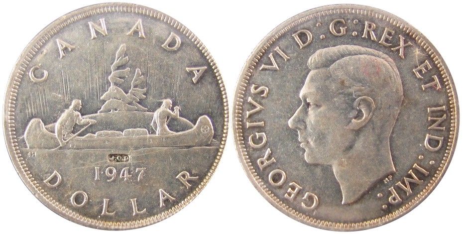 1947 $1 Blt7 J.O.P. ICCS EF40, Key date with counter stamp.