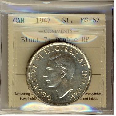 1947 $1 Blunt 7; Double HP ICCS MS62