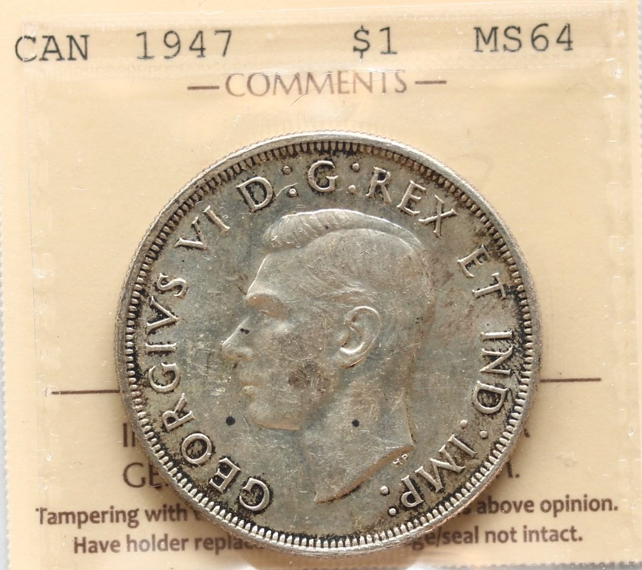 1947 $1 "Blunt 7" ICCS Choice Mint State-64 Lightly toned.
