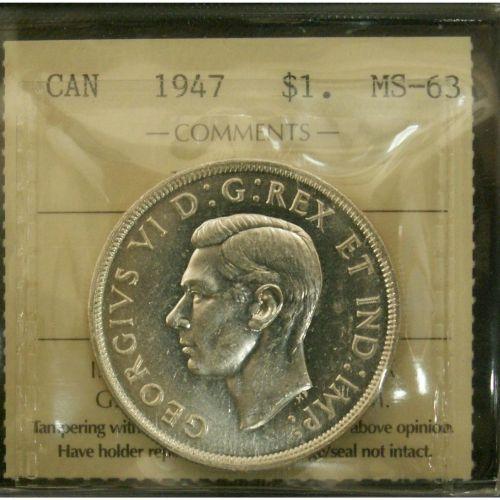 1947 $1 Blunt 7 ICCS MS63, full white and lustrous