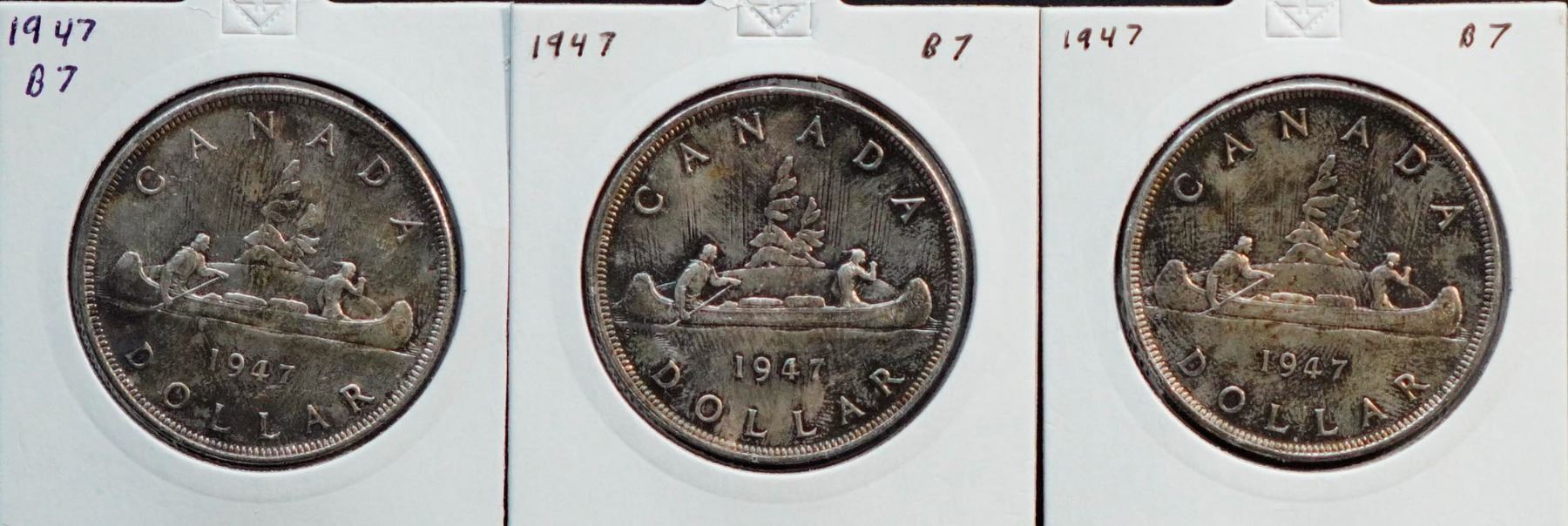 1947 $1 Blunt 7. Lot of 3 AU to UNC coins all with similar and appealing tones.