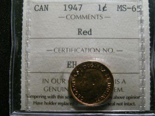 1947 1¢ ICCS MS65 Red PQ. A very flashy coin! Excellent strike and clean fields.