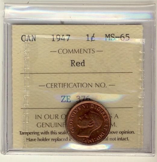 1947 1¢ ICCS MS65 Red.