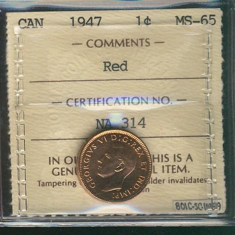 1947 1¢ ICCS MS65RD.