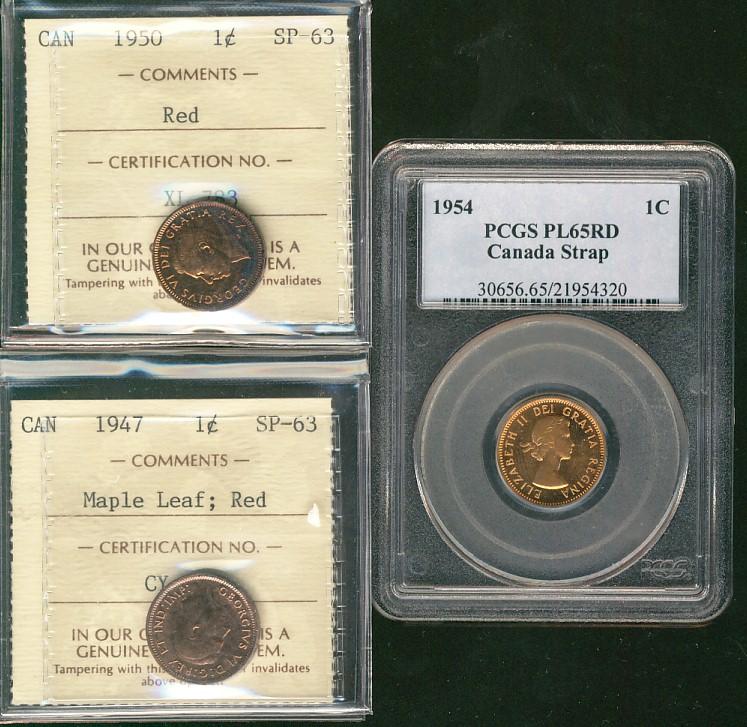 1947 1¢ ML & 1950 ICCS SP63. Also includes 1954 1¢ PCGS PL65RD. Lot of 3 coins.