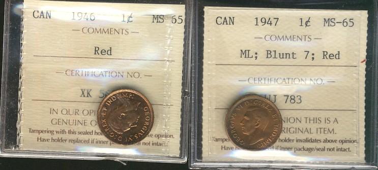 1947 1¢ ML Blt7 & 1946 ICCS MS65RD