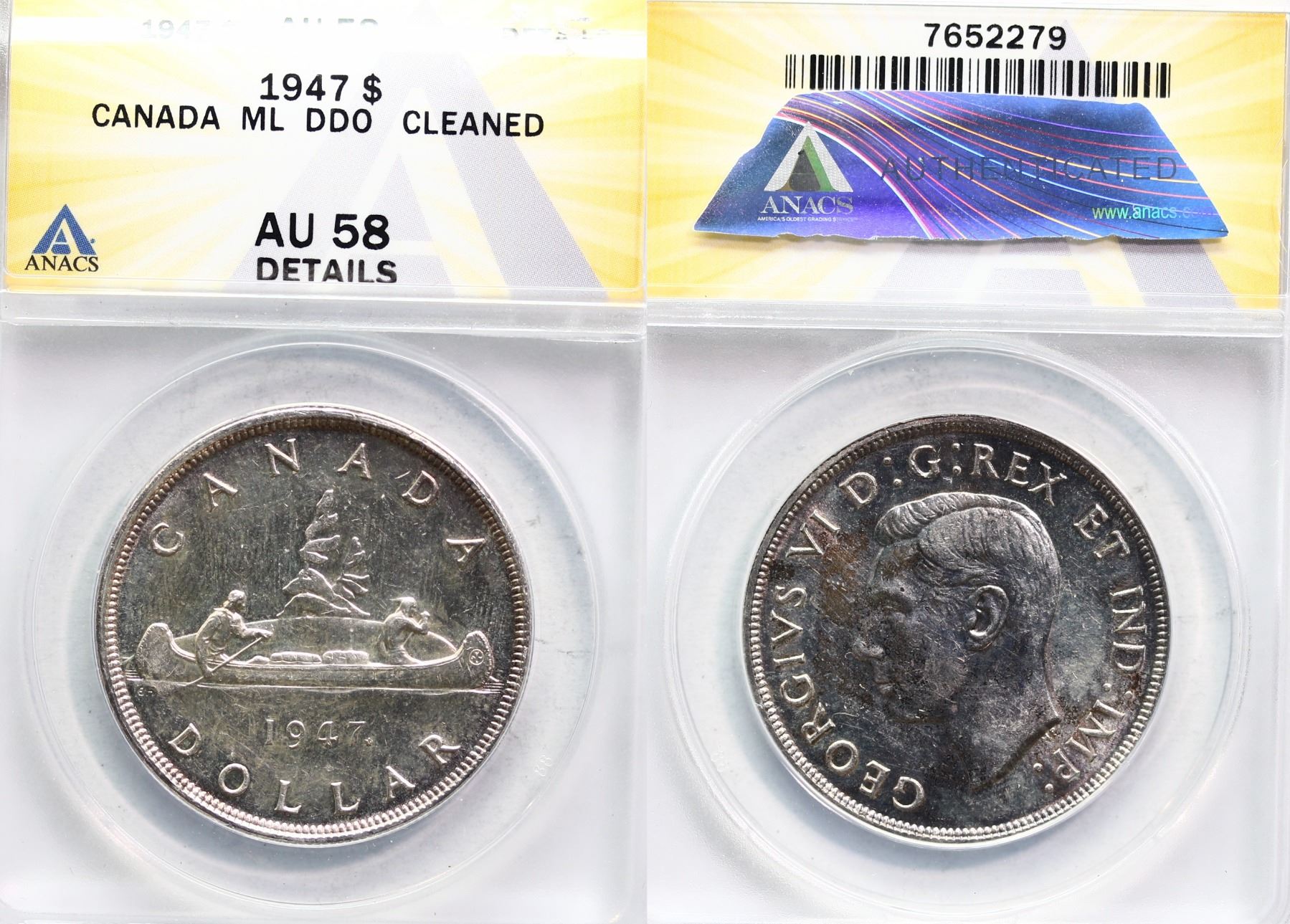 1947 $1 "ML - Dbl HP" ANACS Choice About Uncirculated-58-details, Brilliant and lustrous, lightly cl