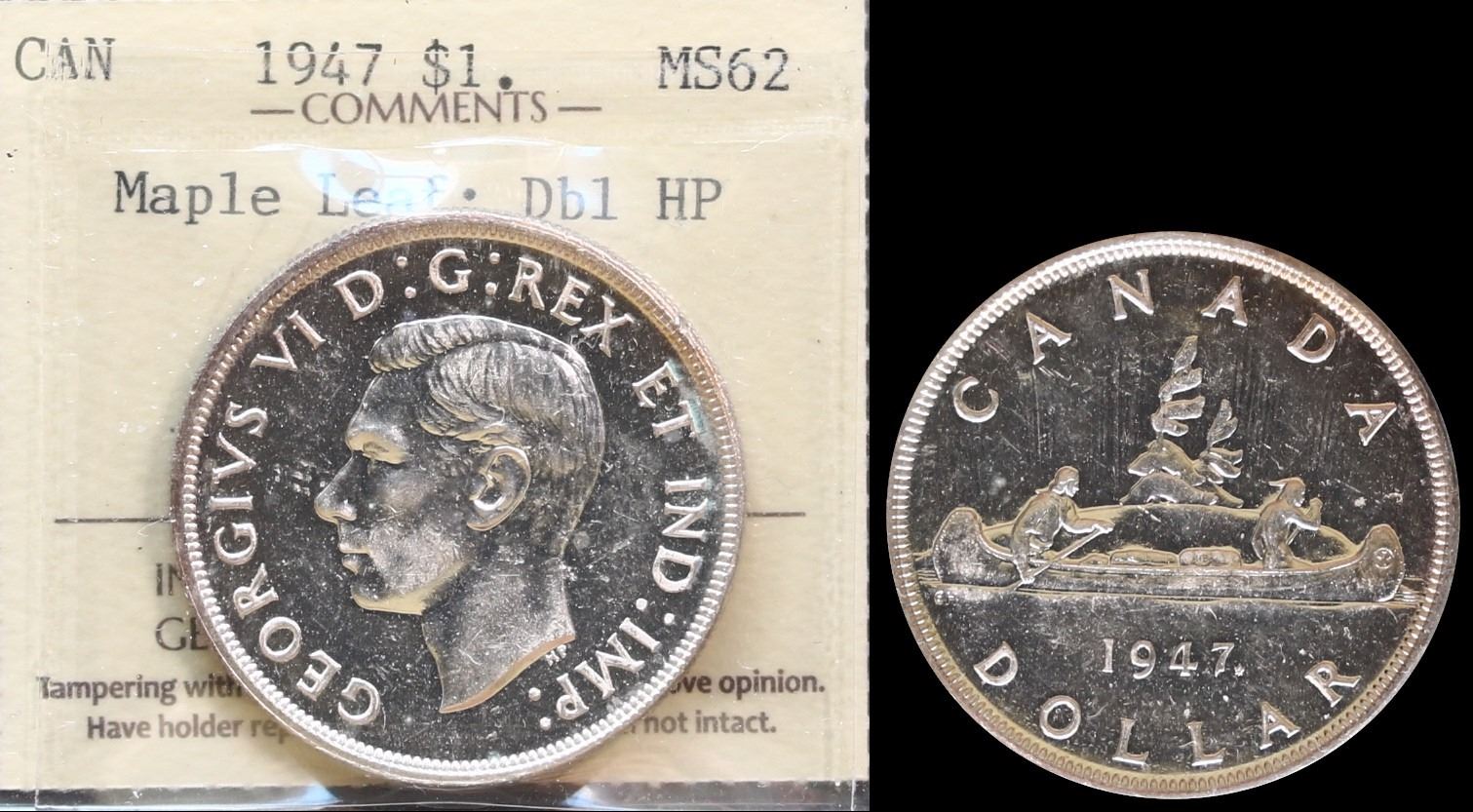 1947 $1 ML "Dbl HP", ICCS Choice Mint State-62.