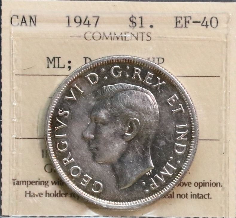 1947 $1 ML, Dbl HP ICCS Extra Fine-40. Lustrous white issue.