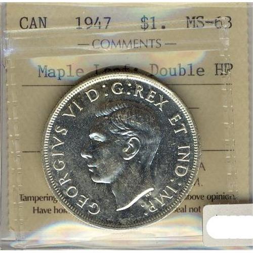 1947 $1 ML, Dbl HP ICCS MS63. Brilliant white in colour.
