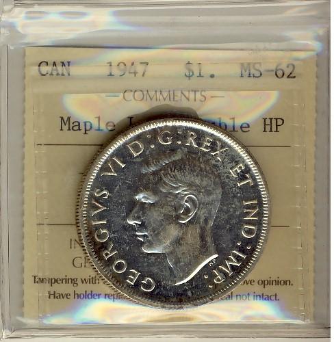 1947 $1 ML Double HP ICCS MS62