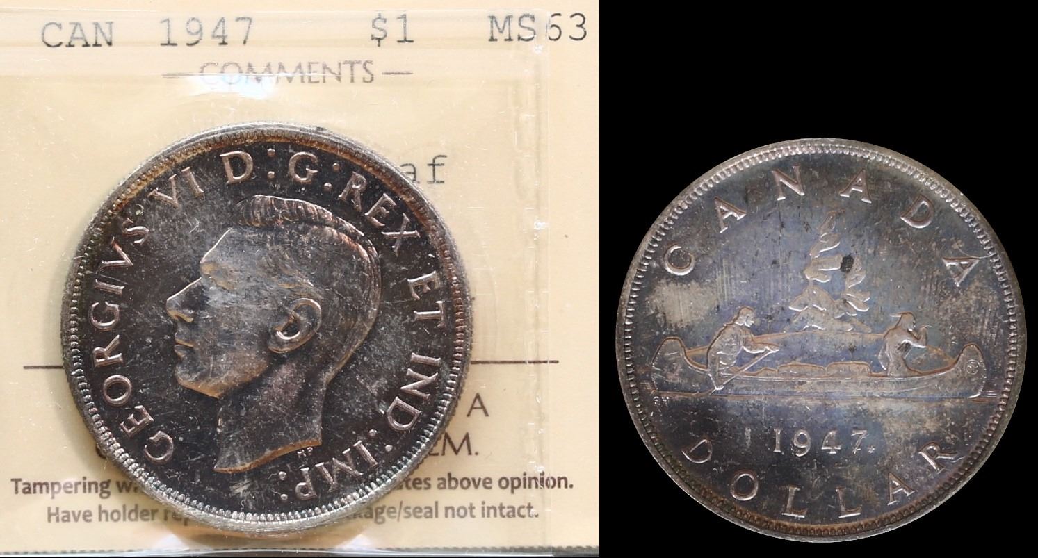 1947 $1 ML ICCS Choice Mint State-63.  Attractive russet tones over full underlying lustre.