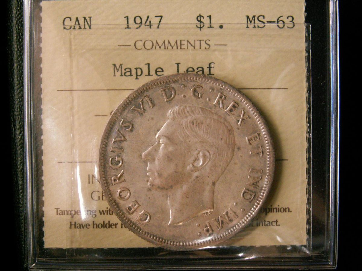 1947 $1 ML ICCS MS63. Brilliant and lustrous.