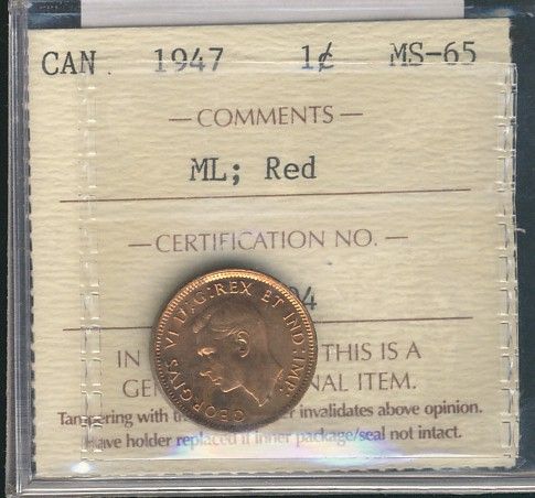 1947 1¢ ML ICCS MS65RD.
