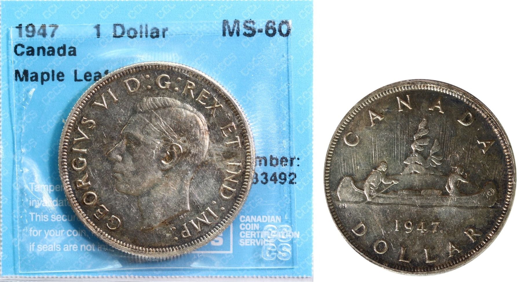 1947 $1 "Maple Leaf" CCCS Mint State-60