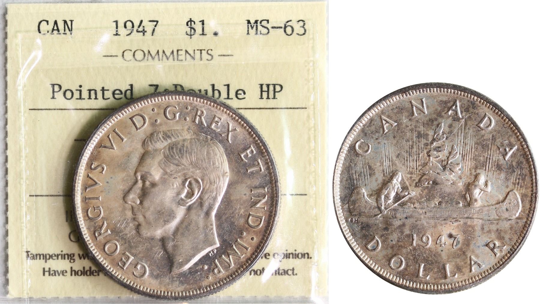 1947 $1 "Pointed 7 - 2 X HP" ICCS Choice Mint State-63 Lightly toned with clean fields and very nice surfaces.