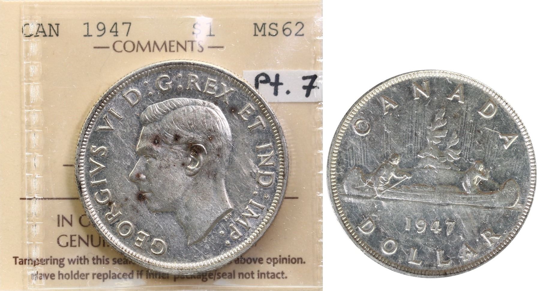 1947 $1 "Pointed 7" ICCS Choice Mint State-62