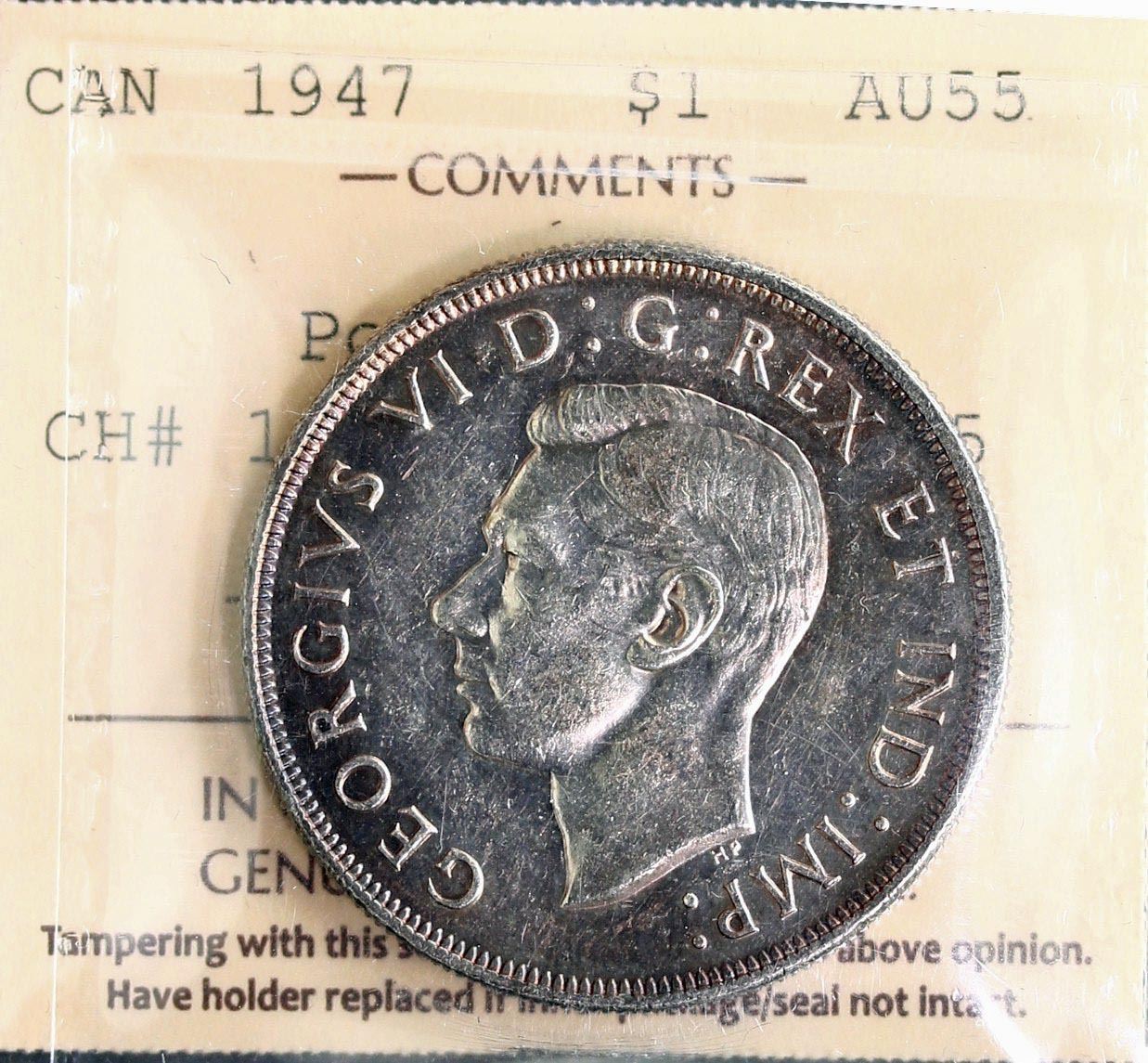 1947 $1 "Pointed7 - CH-1947,P7, Rev.005" ICCS Choice About Uncirculated-55
