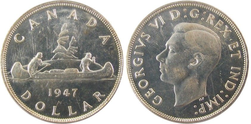 1947 $1 Ptd 7, Dbl HP PCGS MS63. Brilliant and lustrous.