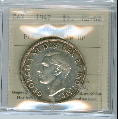 1947 $1 Ptd 7, Dbl Punch ICCS MS62.